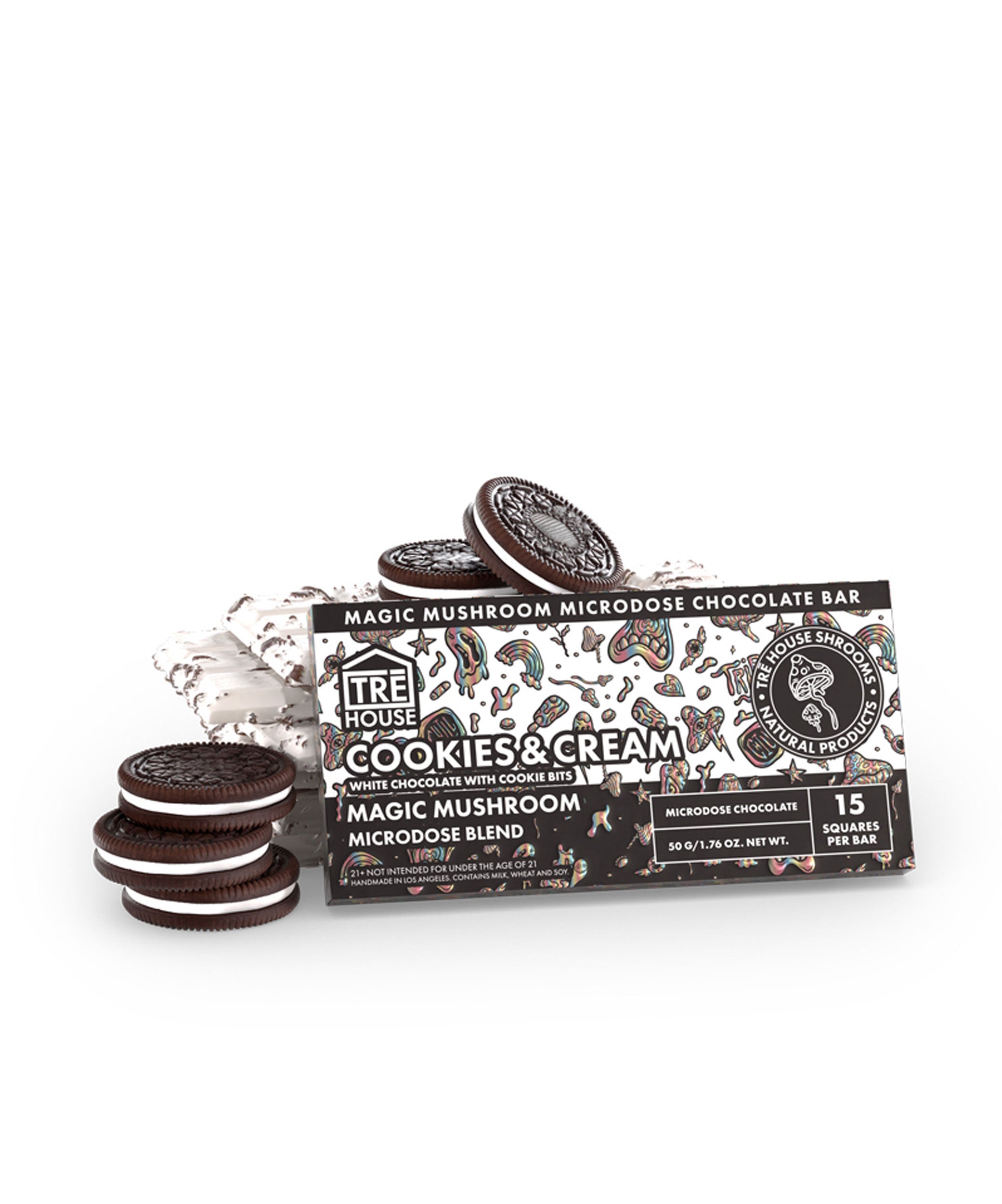 Experience the perfect combination of taste and effect with Tre House’s Magic Mushroom Microdose Blend Cookies & Cream Chocolate Bar—taking your day to the next level.